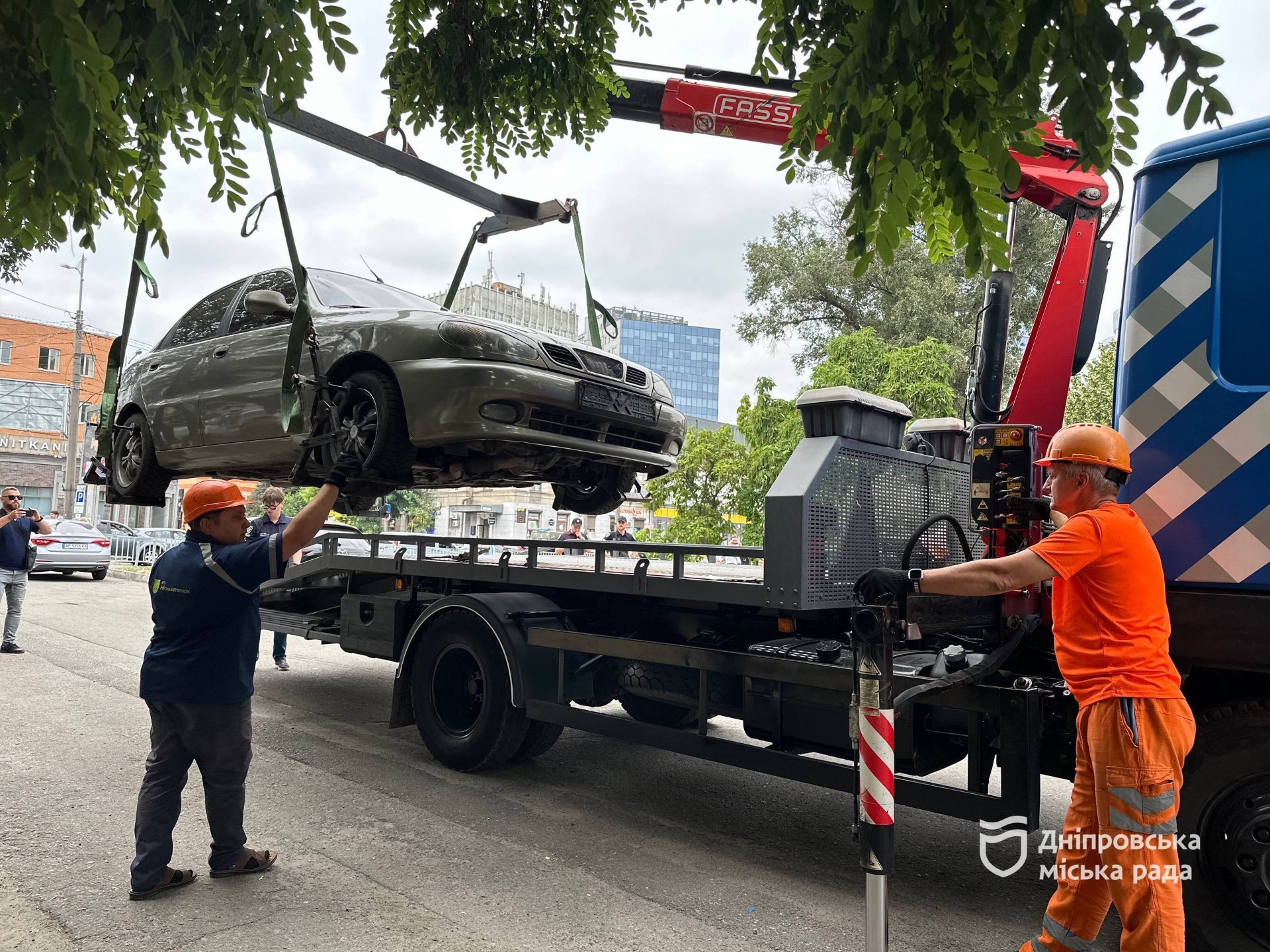 “У таких випадках ми переміщуємо транспортні засоби на спеціальний майданчик на вулиці Курсантській. Сьогодні перемістили три автомобілі, які, згідно з рішенням міської комісії з питань ТБНС, становили потенційну загрозу”, — пояснив заступник директора департаменту транспорту Дніпровської міськради Ігор Швецов.