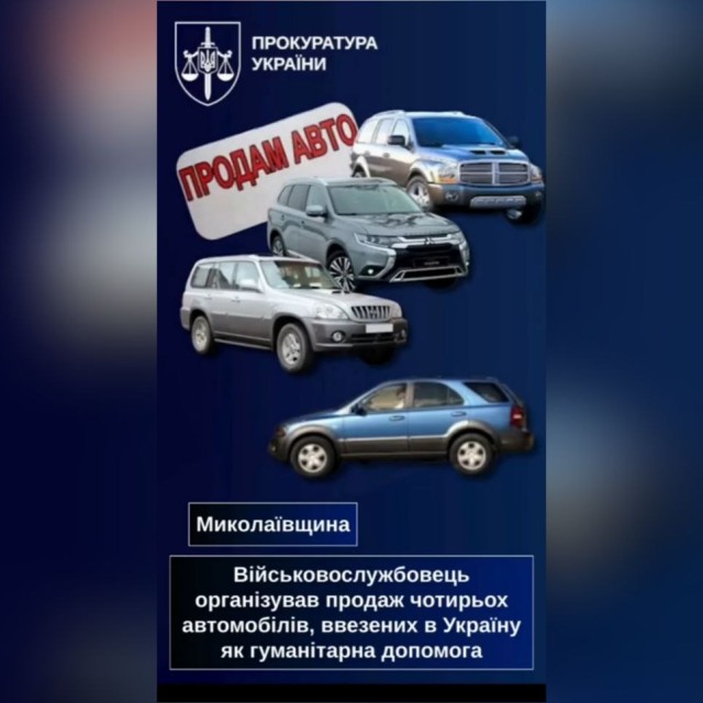 На Миколаївщині військовослужбовець однієї з військових частин морської піхоти організував продаж автомобілів, ввезених в Україну як гуманітарна допомога у 2022–2024 роках. Про це повідомляє 49000 з посиланням на Офіс Генпрокурора.