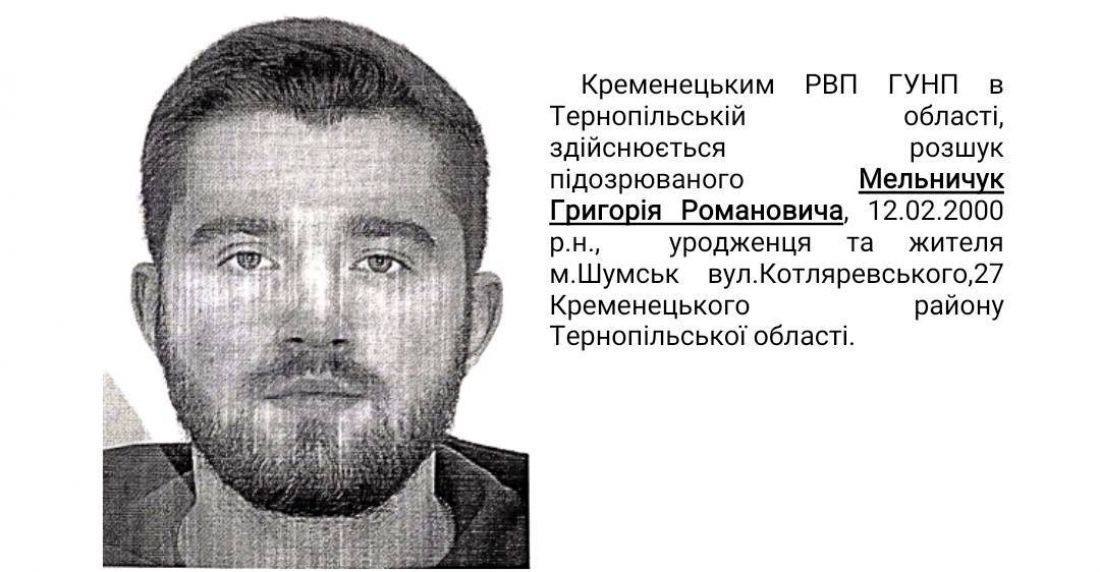 Поліція розшукує підозрюваного в побитті неповнолітнього 25-річного депутата Кременецької районної ради Григорія Мельничука. Оскільки чоловік переховується від слідчих, повідомлення про підозру вручили його родичам. Про це повідомляє 49000 з посиланням на Кременецький районний відділ поліції ГУНП в Тернопільській області.