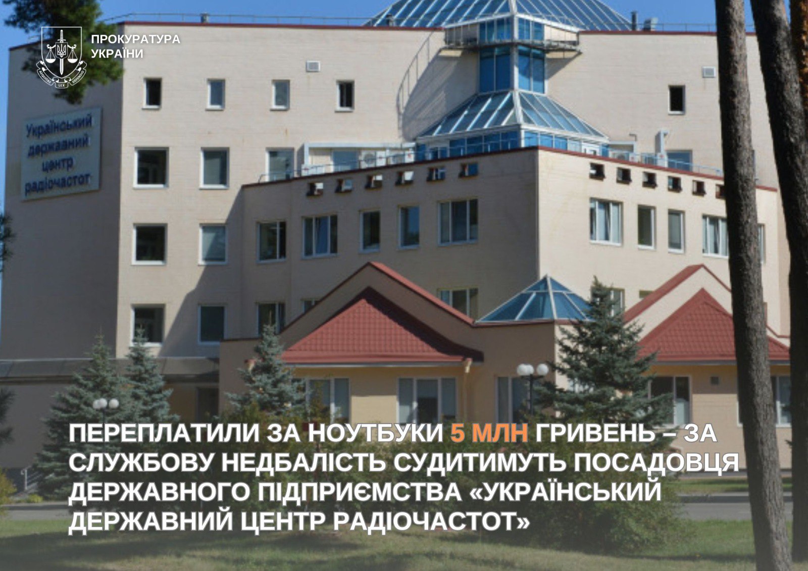 Прокурори Київської міської прокуратури скерували до суду обвинувальний акт стосовно посадової особи Державного підприємства «Український державний центр радіочастот» (УДЦР). Справа стосується закупівлі комп’ютерної техніки за завищеними цінами, що призвело до багатомільйонних втрат державного бюджету. Про це повідомляє 49000.