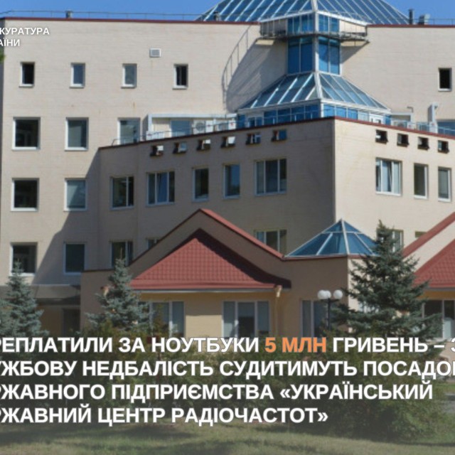 Прокурори Київської міської прокуратури скерували до суду обвинувальний акт стосовно посадової особи Державного підприємства «Український державний центр радіочастот» (УДЦР). Справа стосується закупівлі комп’ютерної техніки за завищеними цінами, що призвело до багатомільйонних втрат державного бюджету. Про це повідомляє 49000.