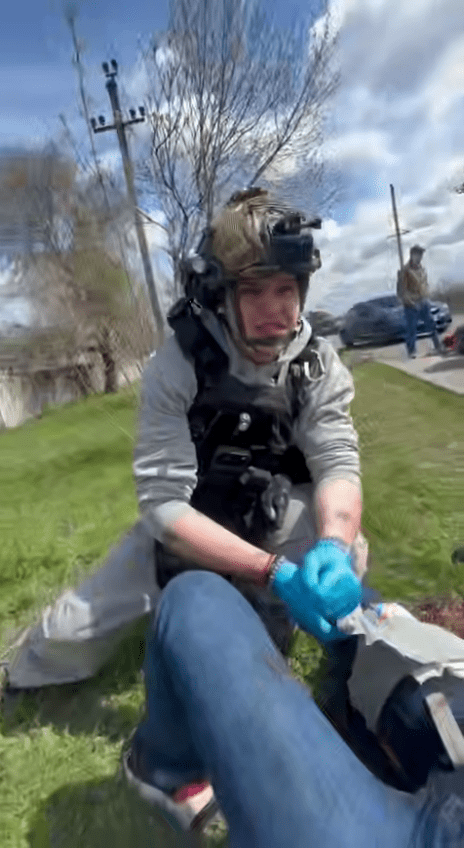 “Це було жахливо некомпетентне надання домедичної допомоги. Зйомка нагрудною GoPro. Ця людина казала персоналу ДСНС: «Отойдите, я врач». У пораненої в салоні авто — відкрита рана стегна. Він каже: «Не накладайте турнікет, витягуйте, будемо тампонувати…». Все на відео. Я в ахує..”