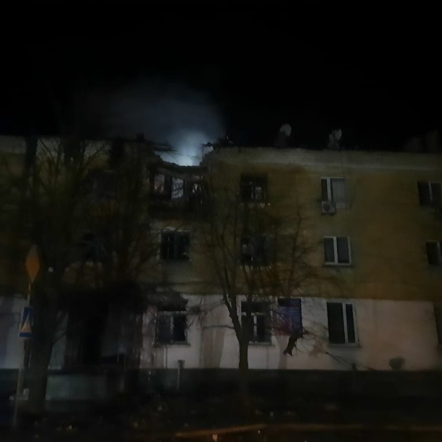 Зайнялася триповерхівка, там понівечені дах та перекриття. Ще в одному багатоквартирному будинку побиті вікна. Горів гараж.
