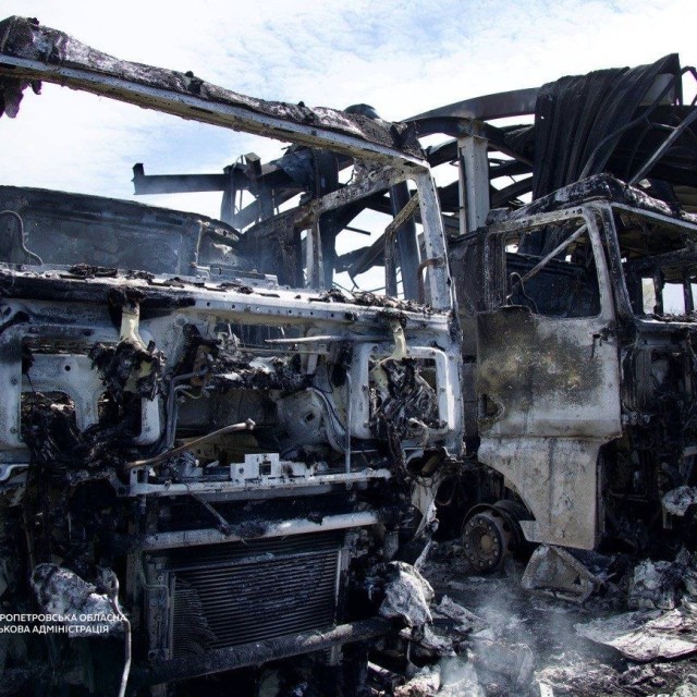 Рятувальники загасили пожежу на АЗС у Дніпрі, яка виникла через ворожу атаку сьогодні вранці. Знищені 8 вантажівок і 4 легковики, повідомляє 49000 з посиланням на Дніпропетровську ОВА.