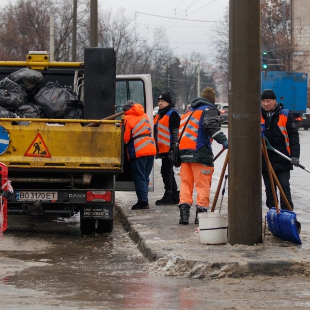 Складні умови: Роботи ускладнювалися дощем та мінусовою температурою повітря, що робило суміш на дорозі надзвичайно слизькою.