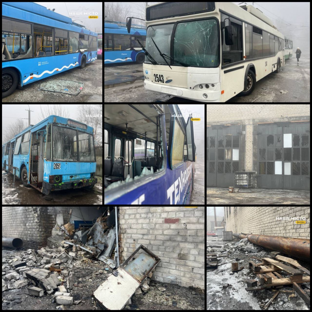 У Дніпрі внаслідок нічної атаки БпЛА пошкоджено близько 20% тролейбусів одного з депо