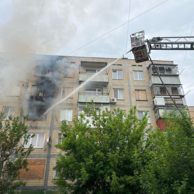 Надвечір через влучання безпілотника у райцентрі зайнялась квартира у багатоповерхівці. Вогонь загасили.