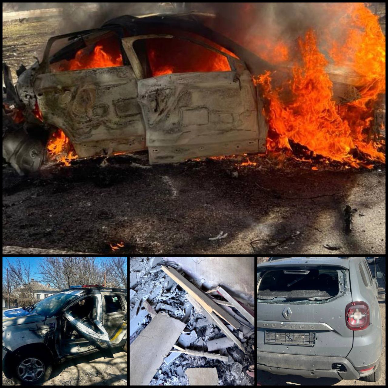 У Нікополі шестеро постраждалих. Всі вони працівники поліції, які були на службі, коли сталася ворожа атака. 42-річний поліцейський госпіталізований у важкому стані. Пошкоджені службові автівки поліції та рятувальників.