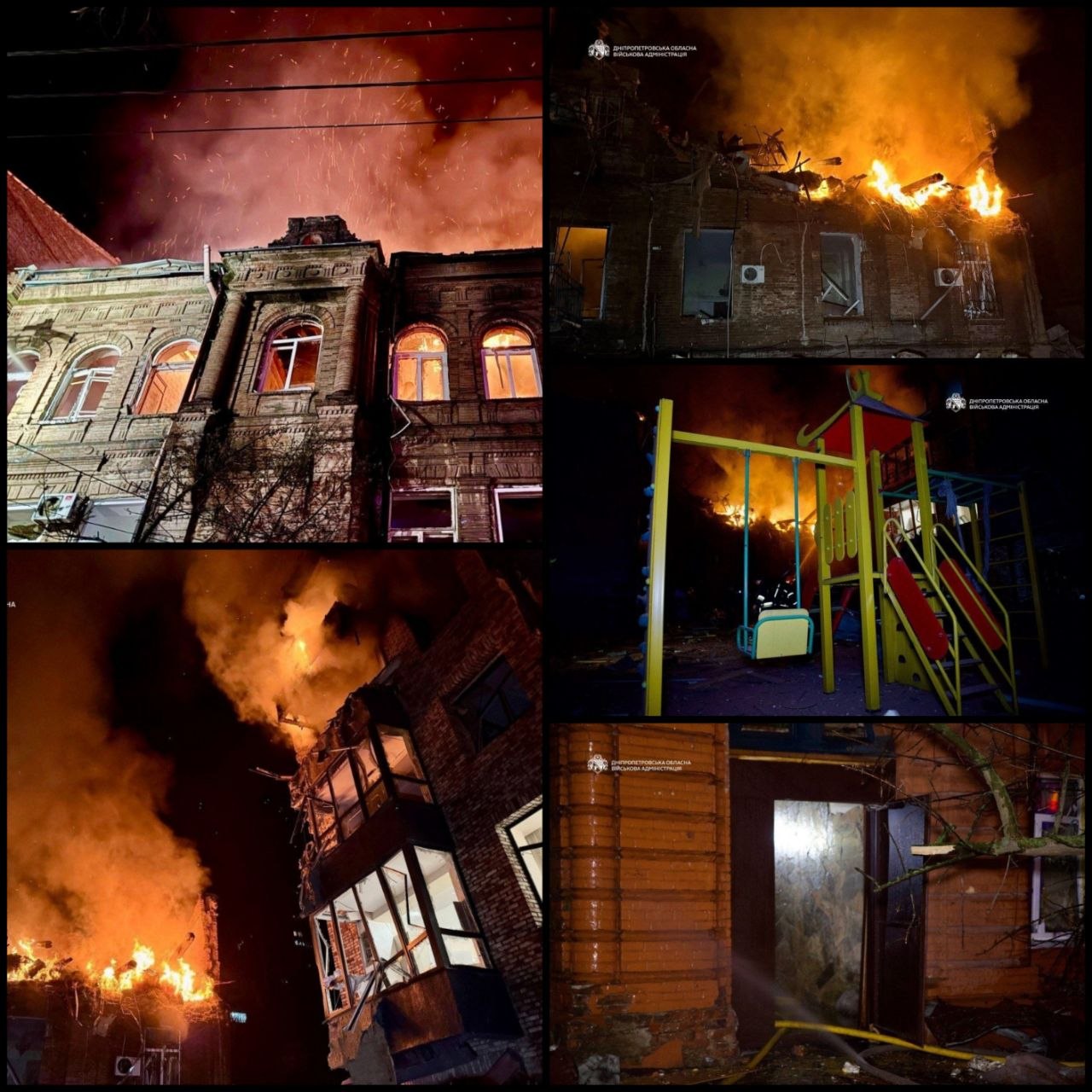 За даними Дніпропетровської ОВА, внаслідок масованого удару виникли пожежі на кількох локаціях. У місті понівечені офісна та адмінбудівлі, житлові будинки, підприємство, автівки.