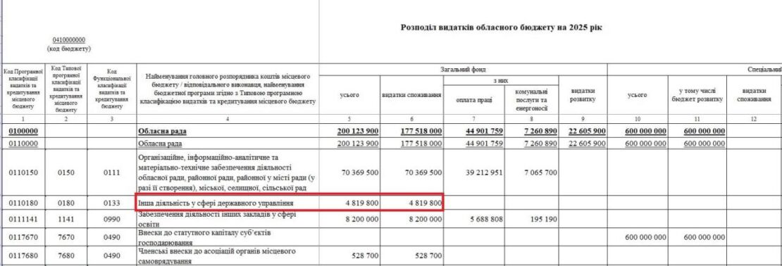 Та й під час повномасштабної війни, попри постійні гучні заяви про те, що кожна копійка має йти на підтримку армії та стійкість громад, у бюджеті області на 2025 рік є гроші, які можуть за певних умов використовуватись на “піар” влади. Причому, закладена можливість “розмито” витрачати ці кошти потенційно створює куди більше можливостей щодо гнучкості фінансування різних інструментів для власної реклами, ніж прямі і публічні закупівлі з висвітлення діяльності облради, де існує чітка підзвітність, де і яку інформацію було опубліковано.